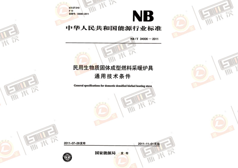 NB/T34006民用生物質(zhì)固體成型燃料采暖爐具通用技術(shù)條件