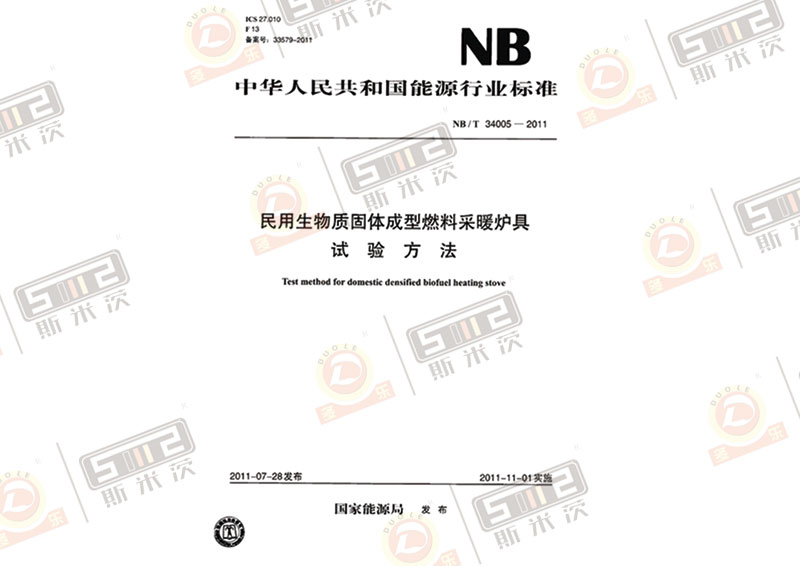 NB/T34005民用生物質(zhì)固體成型燃料采暖爐具試驗(yàn)方法