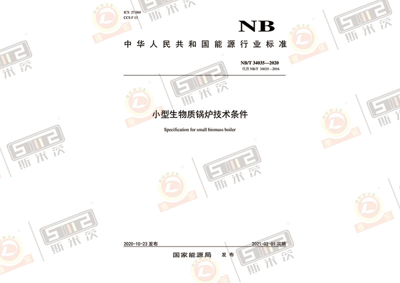 NB/T34035小型生物質(zhì)鍋爐技術(shù)條件